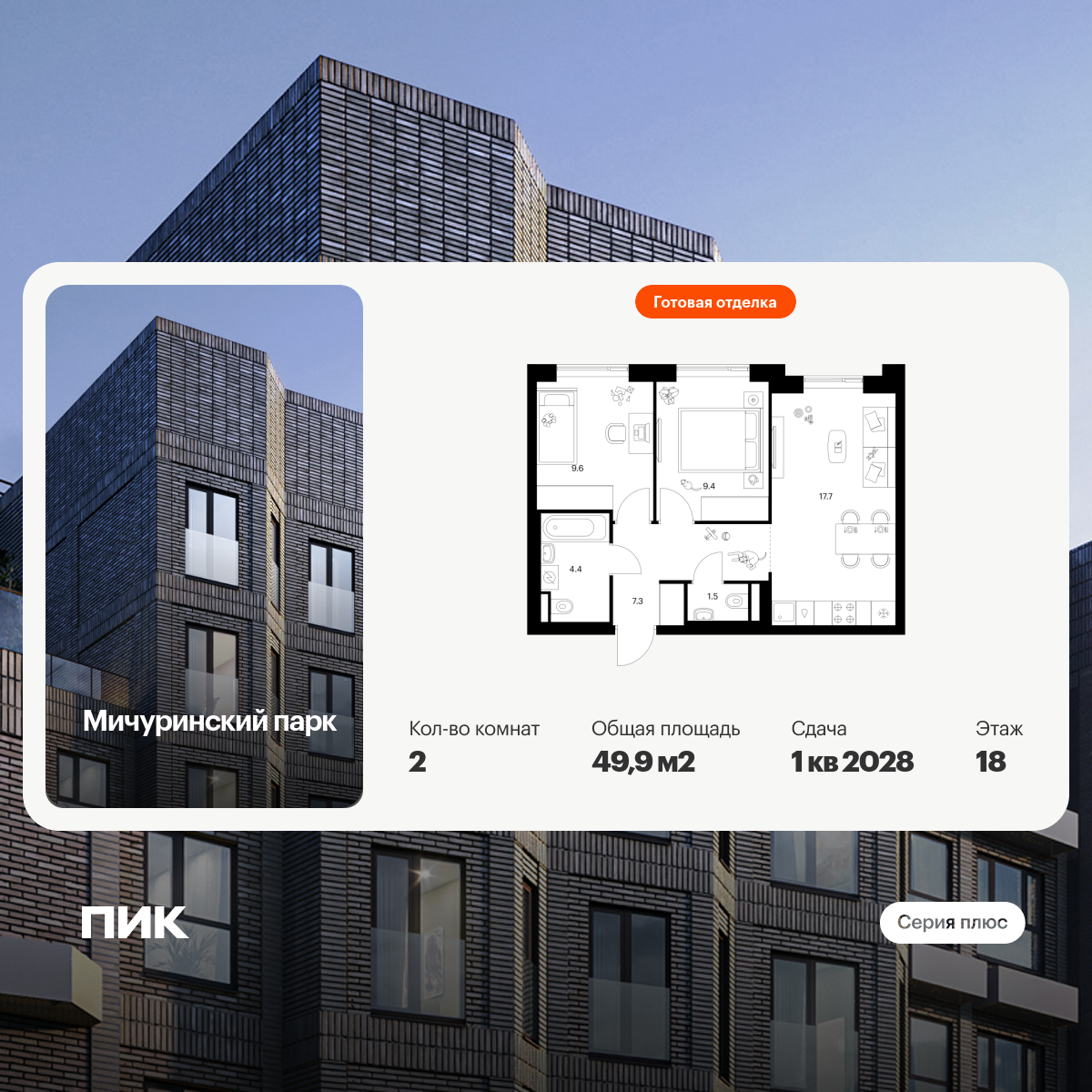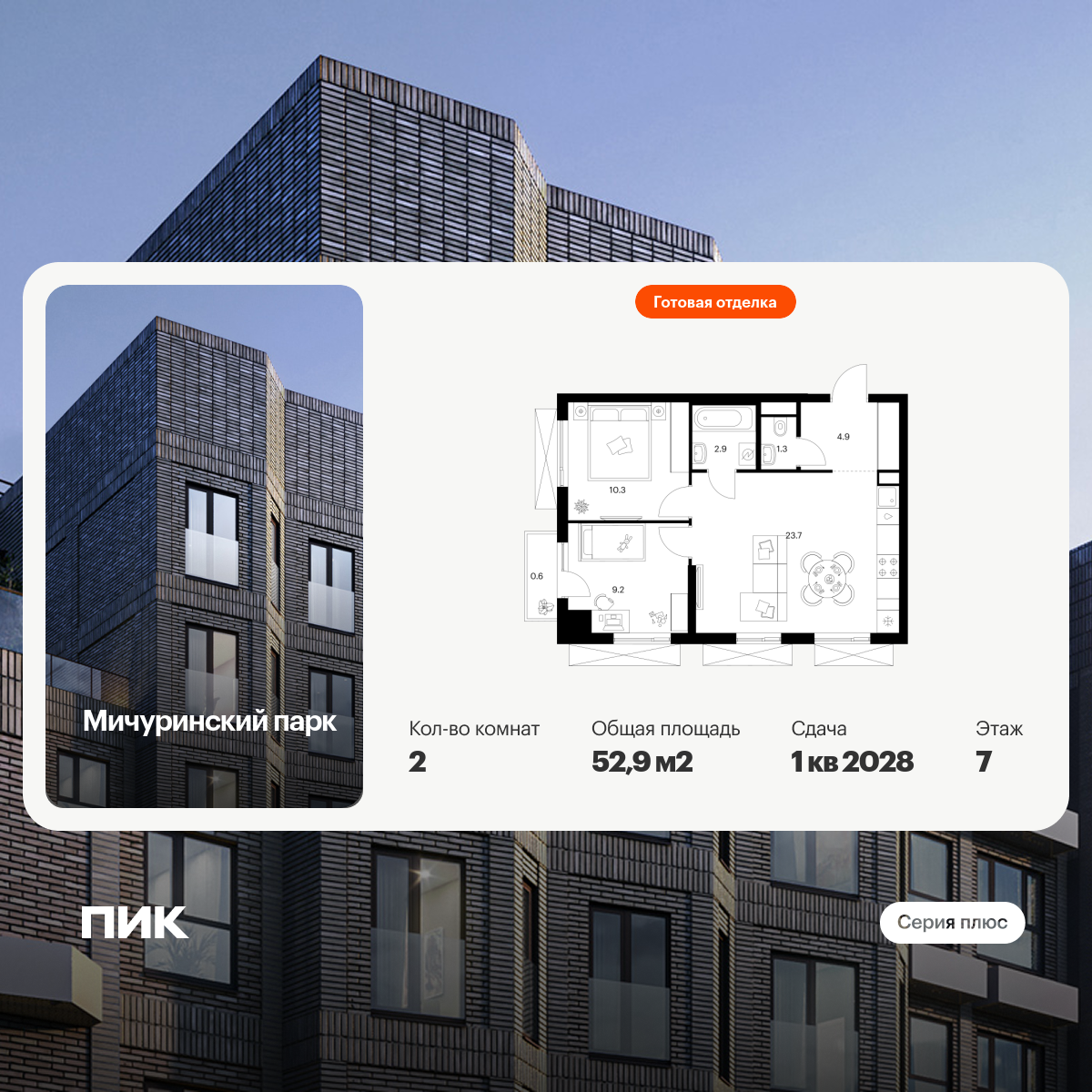 Купить 2к квартиру 62 м² в ЖК Мичуринский парк