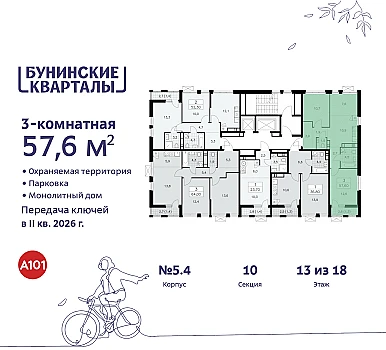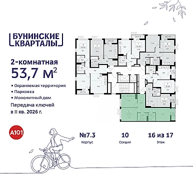 Купить 1к квартиру 39 м² в ЖК Мичуринский парк