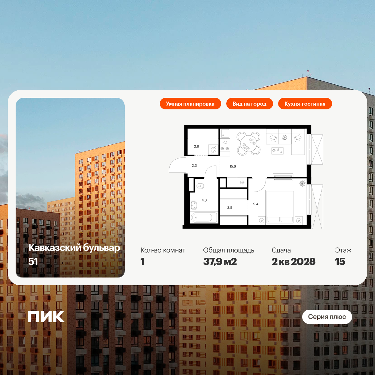 Продаётся 1-комн.квартира площадью 37.90 кв.м на 15 этаже 24 этажного дома (Корпус 3.5, секция 2) проекта ПИК Кавказский бульвар 51. Светлый просторный подъезд на уровне земли, функциональная планировка, большие окна, с отделкой.
