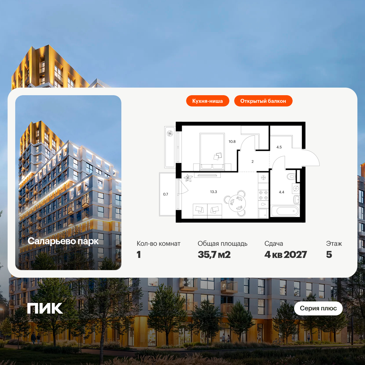 В квартирах продуман каждый метр — мы детально просчитываем все возможные сценарии и способы использовать пространство. Например, большой семье подойдёт квартира с кухней-гостиной, выделенной постирочной и спальнями, разнесёнными по разные стороны гостиной. А кому-то важнее просторная мастер-спальня с гардеробной и собственным санузлом.
