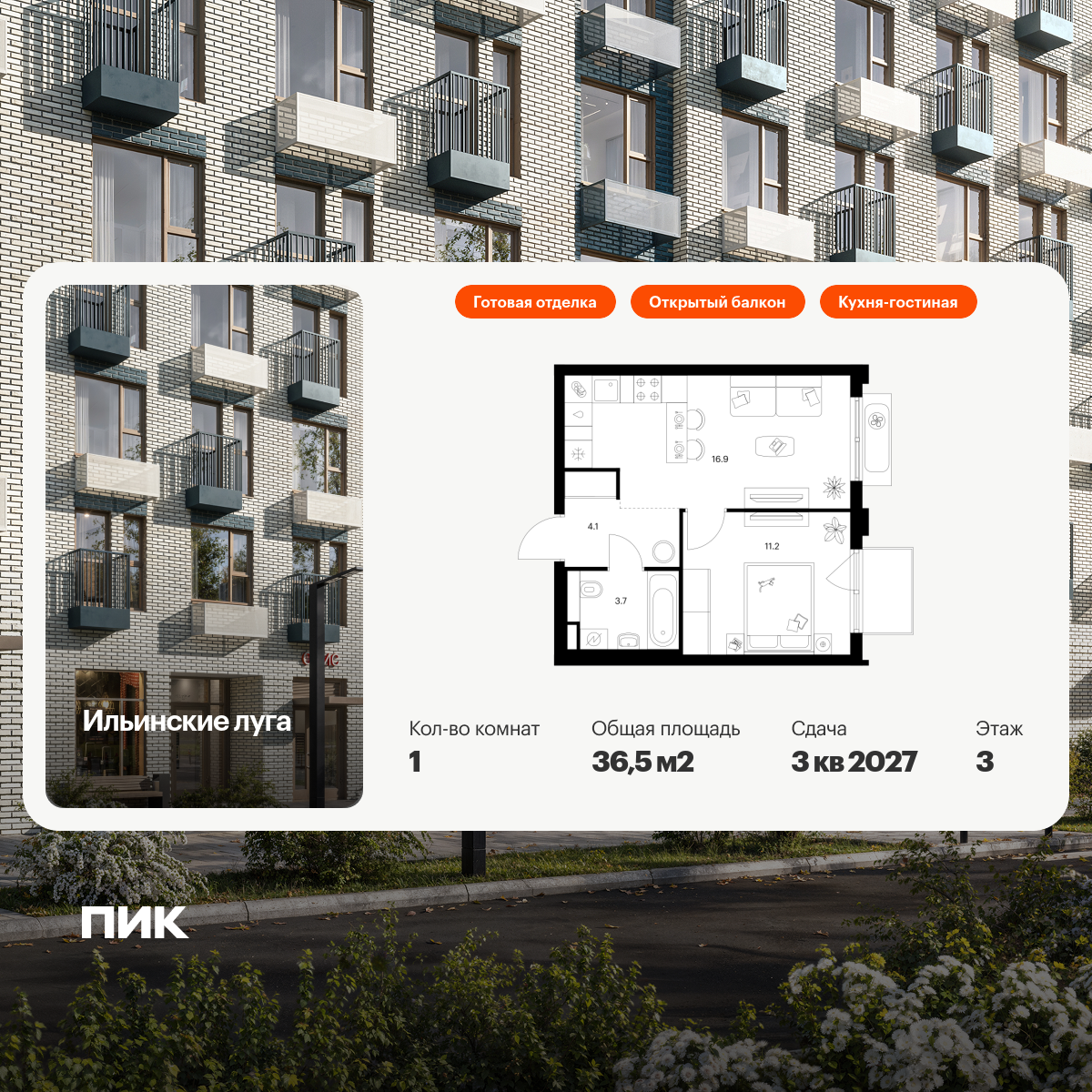 Купить 1к квартиру 36 м² в ЖК Ильинские луга