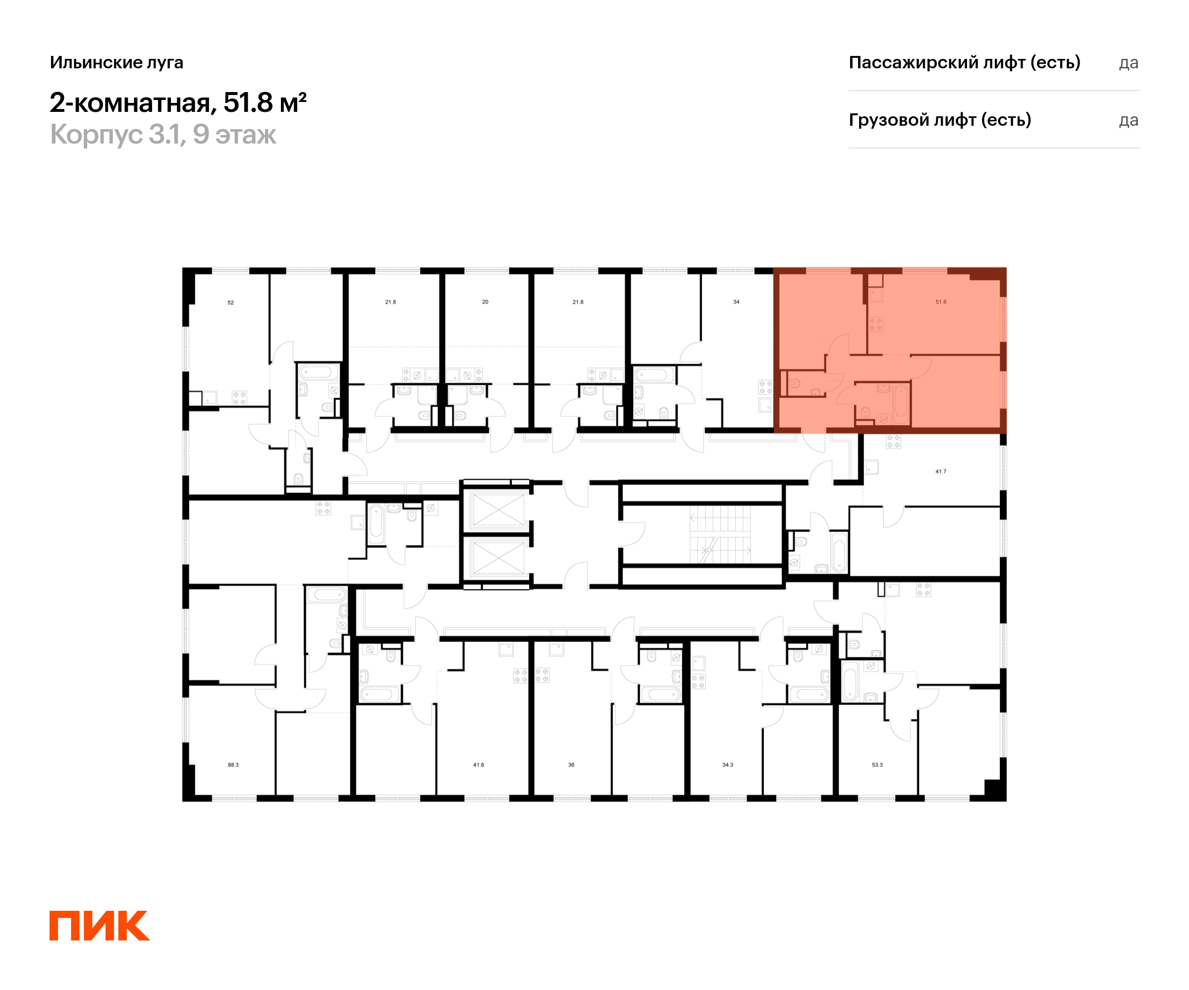 Продаётся 2-комн.квартира площадью 51.80 кв.м на 9 этаже 9 этажного дома (Корпус 3.1, секция 1) проекта ПИК Ильинские луга. Светлый просторный подъезд на уровне земли, функциональная планировка, большие окна, с отделкой.
