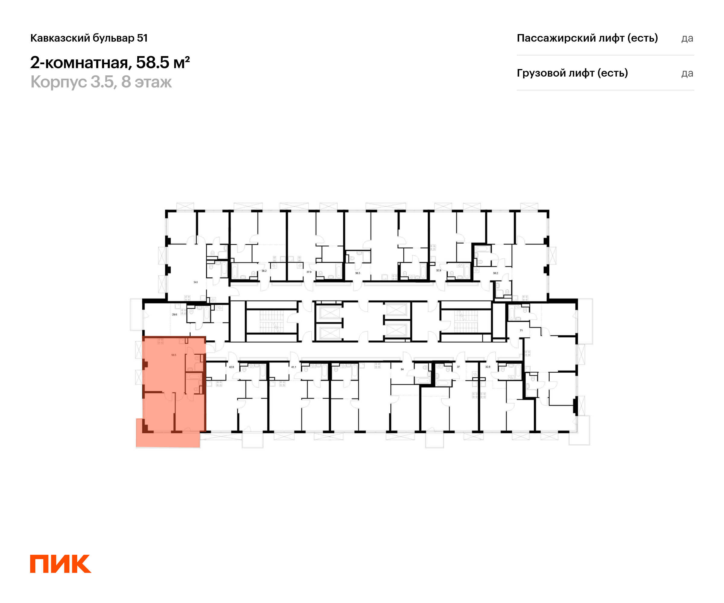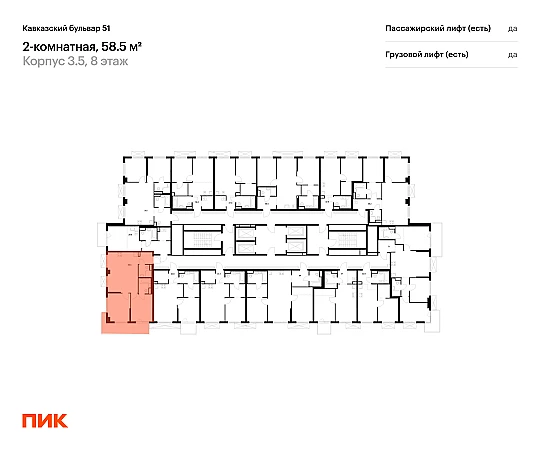 Продаётся 2-комн.квартира площадью 58.50 кв.м на 8 этаже 24 этажного дома (Корпус 3.5, секция 2) проекта ПИК Кавказский бульвар 51. Светлый просторный подъезд на уровне земли, функциональная планировка, большие окна, с отделкой.