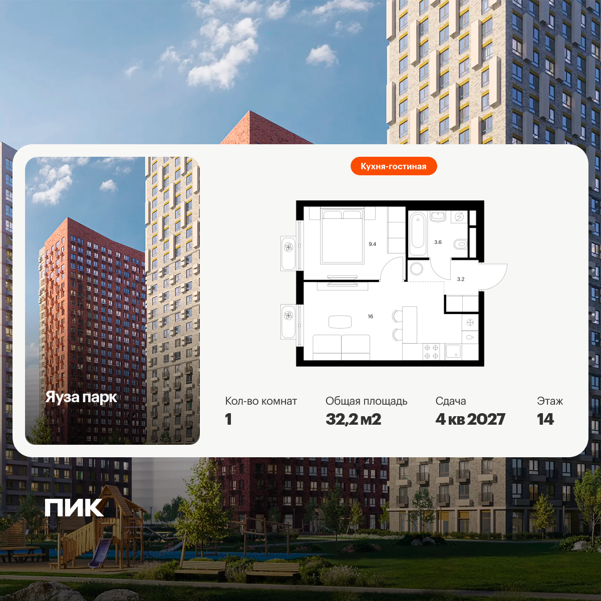 Купить 1к квартиру 32 м² в ЖК Яуза парк