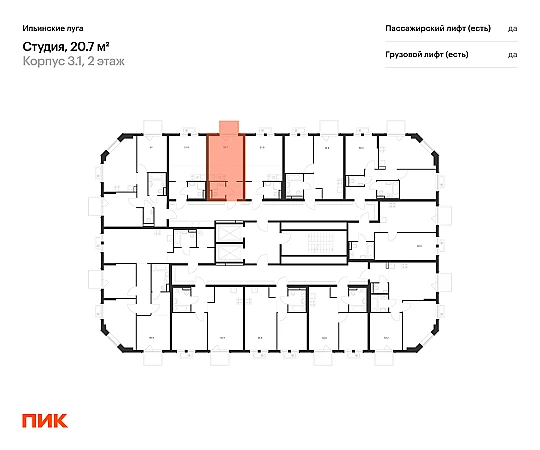 Продаётся квартира-студия площадью 20.70 кв.м на 2 этаже 9 этажного дома (Корпус 3.1, секция 4) проекта ПИК Ильинские луга. Светлый просторный подъезд на уровне земли, функциональная планировка, большие окна, с отделкой.