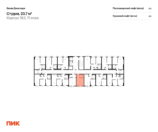 Продаётся квартира-студия площадью 23.70 кв.м на 11 этаже 14 этажного дома (Корпус 16.1, секция 2) проекта ПИК Белая Дача парк. Светлый просторный подъезд на уровне земли, функциональная планировка, большие окна, с отделкой.