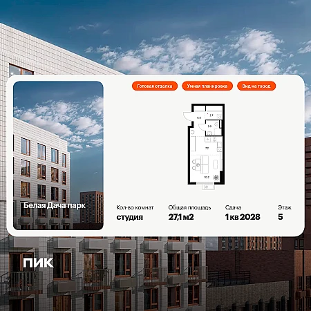 Купить квартиру студию 23 м² в ЖК Белая Дача парк