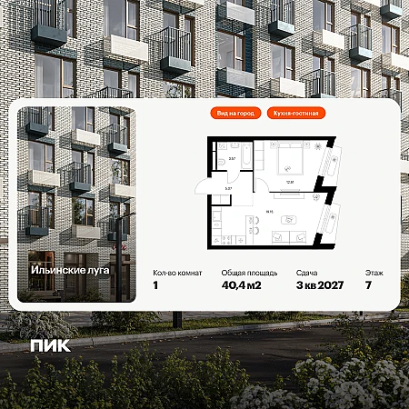 Продаётся 1-комн.квартира площадью 40.40 кв.м на 7 этаже 9 этажного дома (Корпус 4.2, секция 5) проекта ПИК Ильинские луга. Светлый просторный подъезд на уровне земли, функциональная планировка, большие окна, с отделкой.