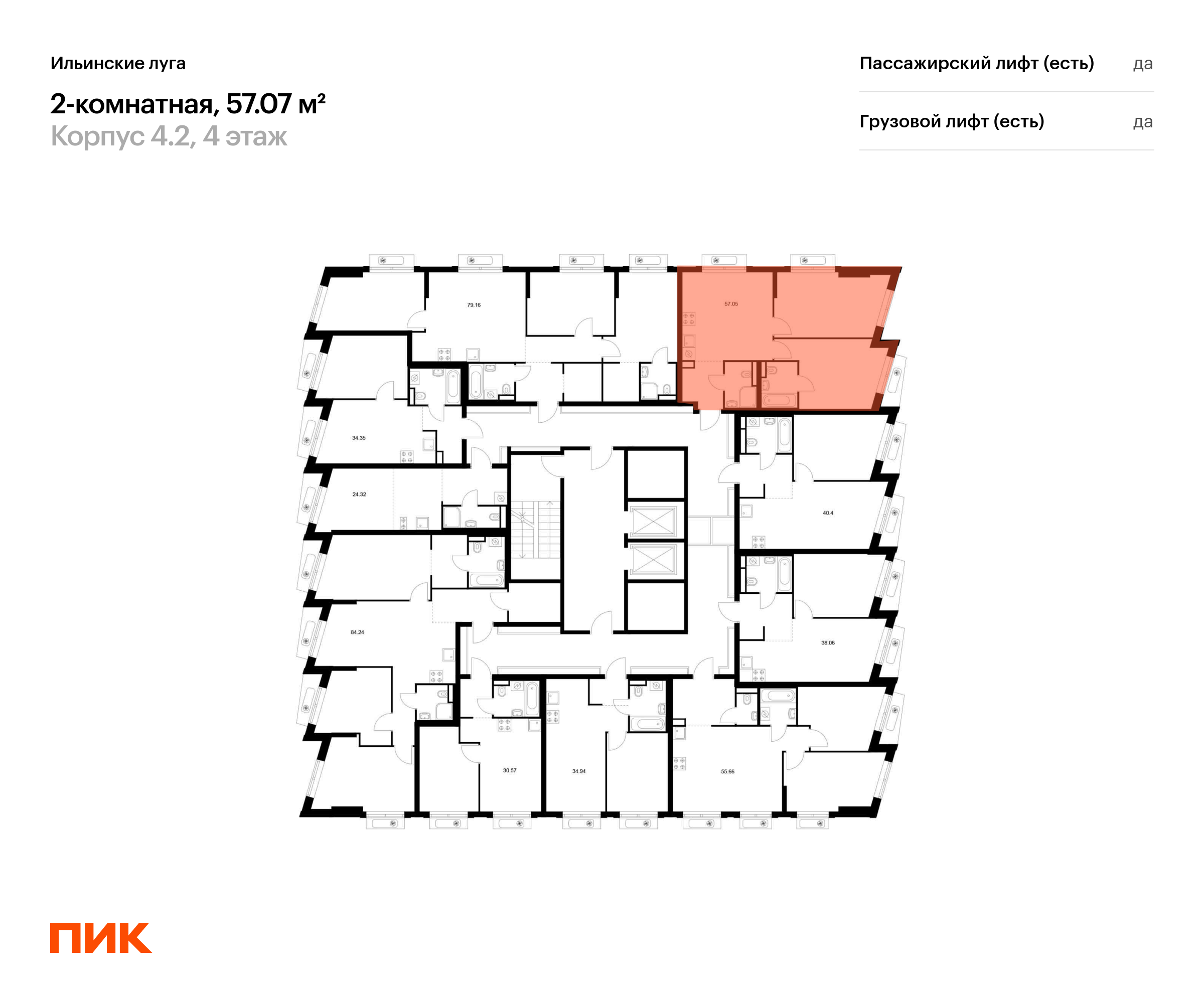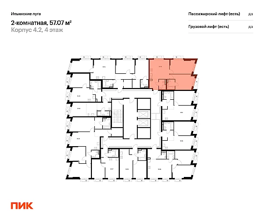 Продаётся 2-комн.квартира площадью 57.07 кв.м на 4 этаже 9 этажного дома (Корпус 4.2, секция 5) проекта ПИК Ильинские луга. Светлый просторный подъезд на уровне земли, функциональная планировка, большие окна, с отделкой.