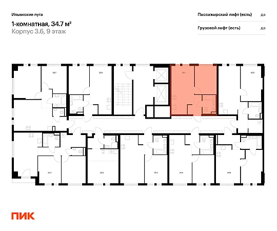 Продаётся 1-комн.квартира площадью 34.70 кв.м на 9 этаже 9 этажного дома (Корпус 3.6, секция 5) проекта ПИК Ильинские луга. Светлый просторный подъезд на уровне земли, функциональная планировка, большие окна, с отделкой.
