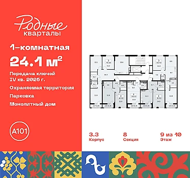 Продаётся 1-комн.квартира площадью 34.30 кв.м на 9 этаже 9 этажного дома (Корпус 4.3, секция 6) проекта ПИК Ильинские луга. Светлый просторный подъезд на уровне земли, функциональная планировка, большие окна, с отделкой.