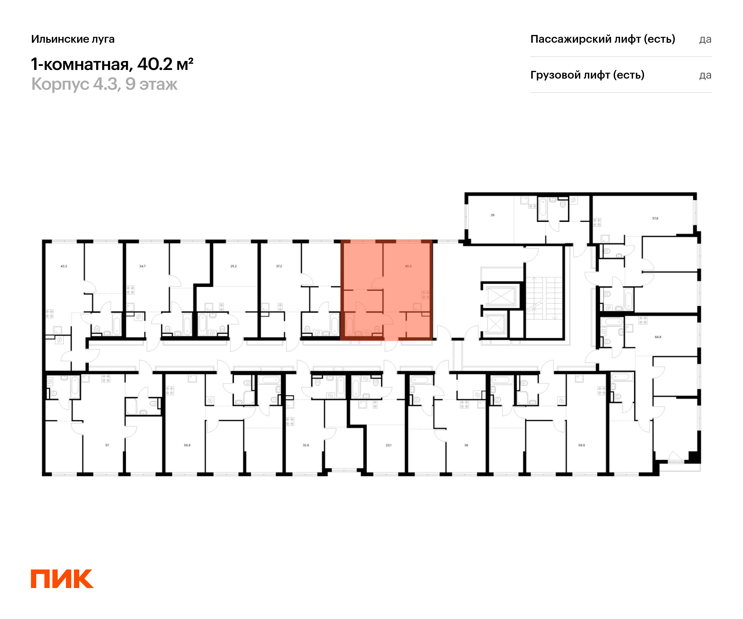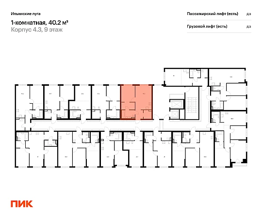 Продаётся 1-комн.квартира площадью 40.20 кв.м на 9 этаже 9 этажного дома (Корпус 4.3, секция 4) проекта ПИК Ильинские луга. Светлый просторный подъезд на уровне земли, функциональная планировка, большие окна, с отделкой.