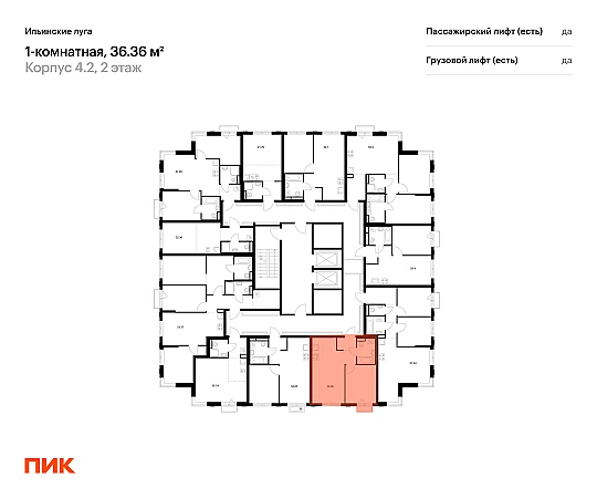 Продаётся 1-комн.квартира площадью 36.36 кв.м на 2 этаже 9 этажного дома (Корпус 4.2, секция 1) проекта ПИК Ильинские луга. Светлый просторный подъезд на уровне земли, функциональная планировка, большие окна, с отделкой.