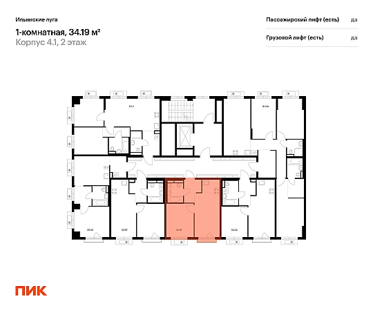 Продаётся 1-комн.квартира площадью 34.19 кв.м на 2 этаже 9 этажного дома (Корпус 4.1, секция 6) проекта ПИК Ильинские луга. Светлый просторный подъезд на уровне земли, функциональная планировка, большие окна, с отделкой.
