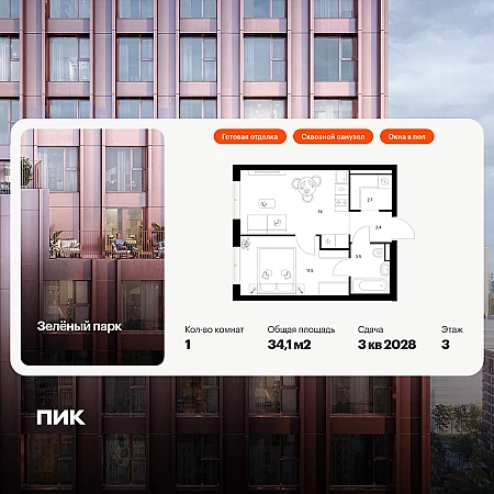 Купить 1к квартиру 34 м² в ЖК Ильинские луга