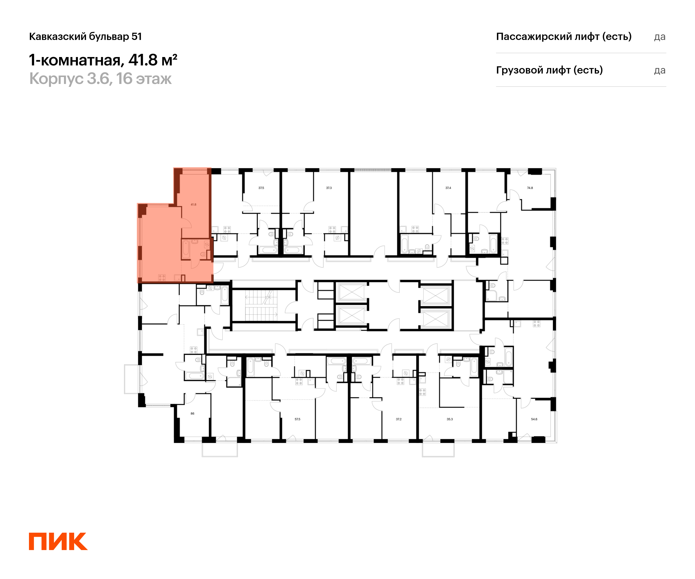 Продаётся 1-комн.квартира площадью 41.80 кв.м на 16 этаже 32 этажного дома (Корпус 3.6, секция 3) проекта ПИК Кавказский бульвар 51. Светлый просторный подъезд на уровне земли, функциональная планировка, большие окна, с отделкой.