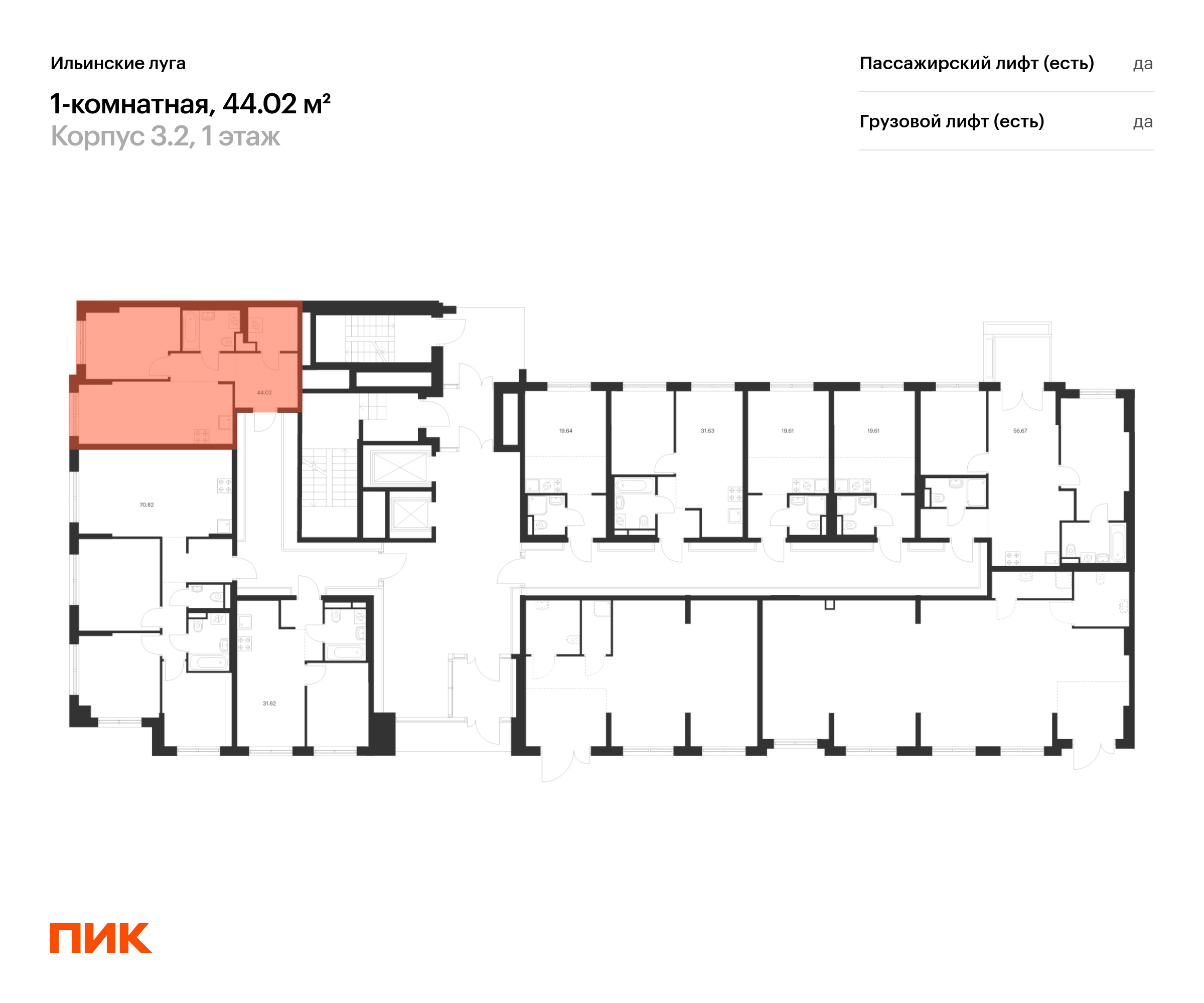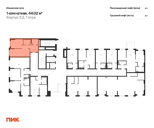 Продаётся 1-комн.квартира площадью 44.02 кв.м на 1 этаже 9 этажного дома (Корпус 3.2, секция 2) проекта ПИК Ильинские луга. Светлый просторный подъезд на уровне земли, функциональная планировка, большие окна, с отделкой.