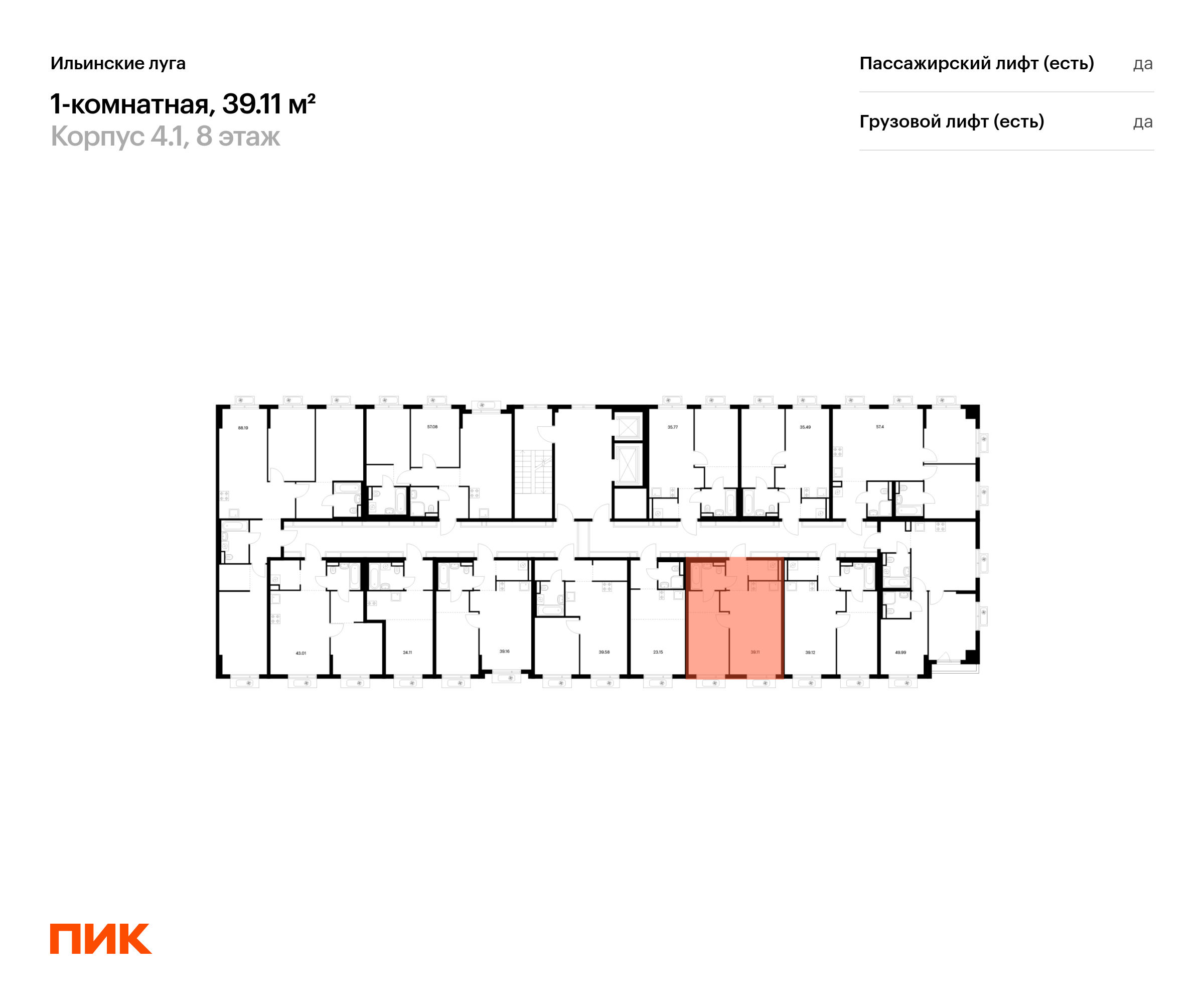 Продаётся 1-комн.квартира площадью 39.11 кв.м на 8 этаже 9 этажного дома (Корпус 4.1, секция 1) проекта ПИК Ильинские луга. Светлый просторный подъезд на уровне земли, функциональная планировка, большие окна, с отделкой.