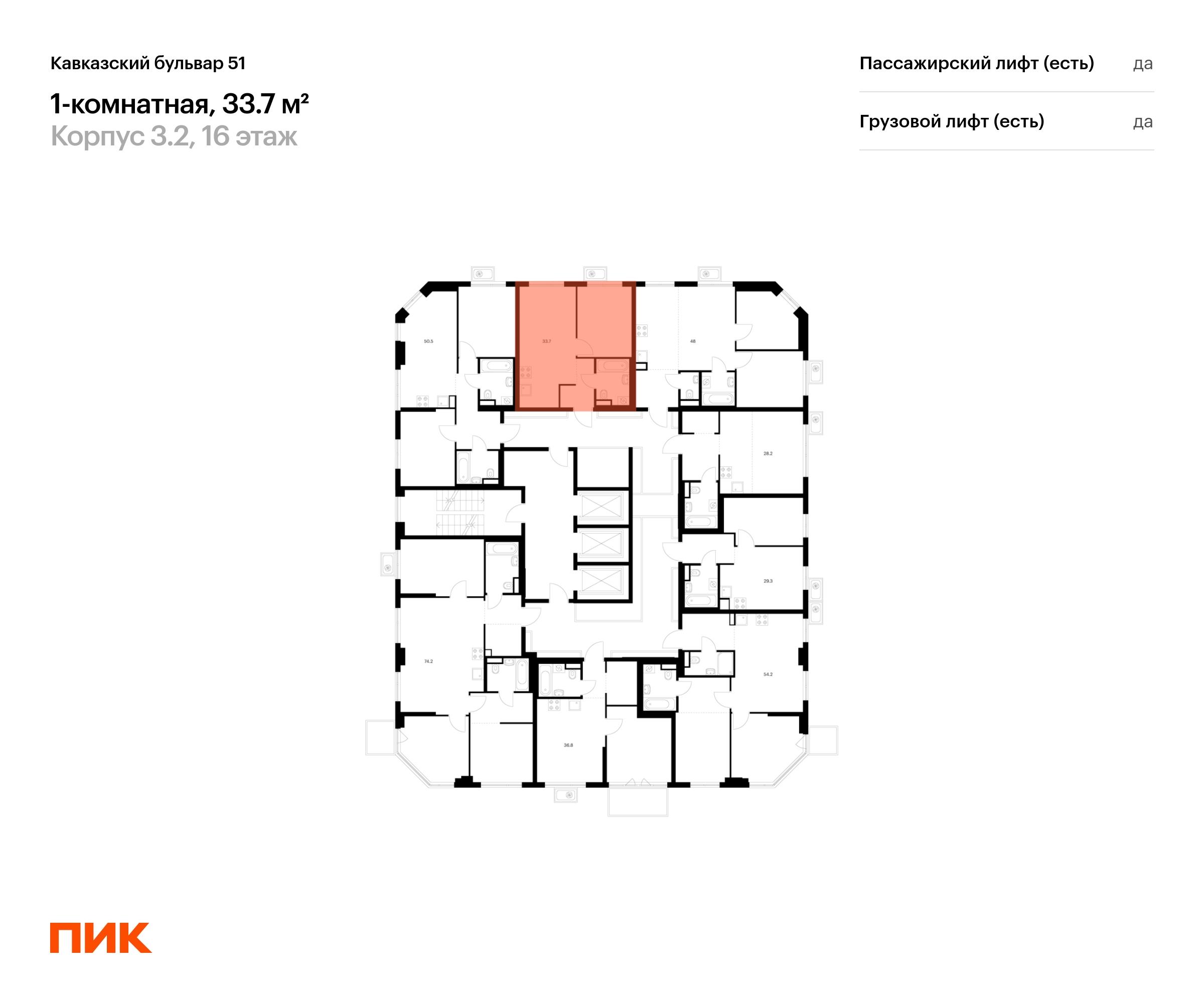 Продаётся 1-комн.квартира площадью 33.70 кв.м на 16 этаже 23 этажного дома (Корпус 3.2, секция 2) проекта ПИК Кавказский бульвар 51. Светлый просторный подъезд на уровне земли, функциональная планировка, большие окна, с отделкой.