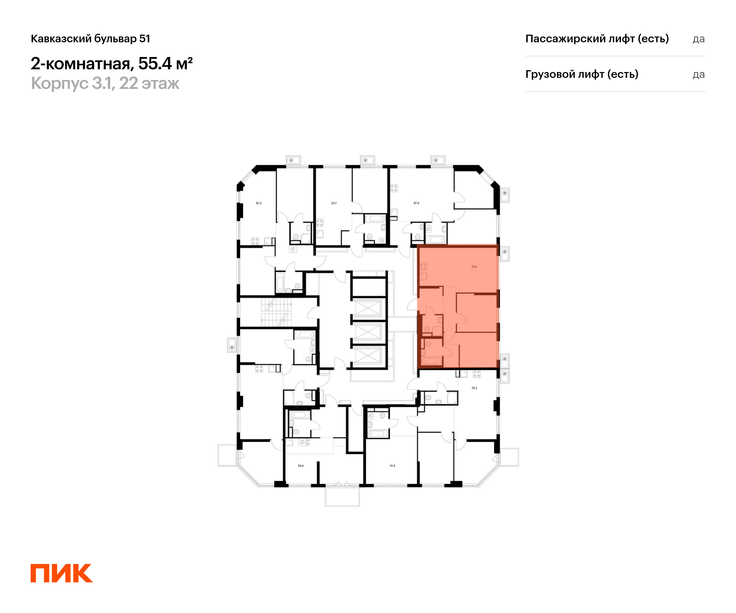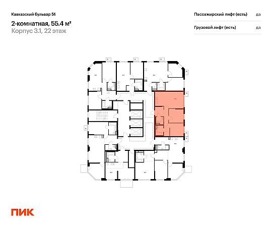 Продаётся 2-комн.квартира площадью 55.40 кв.м на 22 этаже 23 этажного дома (Корпус 3.1, секция 1) проекта ПИК Кавказский бульвар 51. Светлый просторный подъезд на уровне земли, функциональная планировка, большие окна, с отделкой.