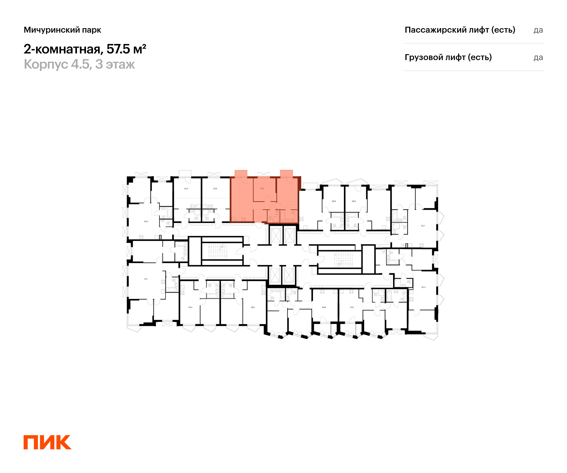 Продаётся 2-комн.квартира площадью 57.50 кв.м на 3 этаже 32 этажного дома (Корпус 4.5, секция 2) проекта ПИК Мичуринский парк. Светлый просторный подъезд на уровне земли, функциональная планировка, большие окна, с отделкой.