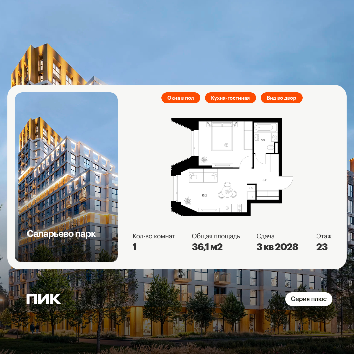 Купить 1к квартиру 36 м² в ЖК Саларьево парк