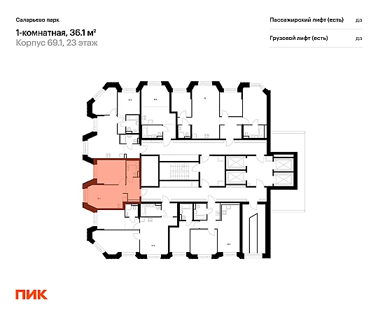 Продаётся 1-комн.квартира площадью 36.10 кв.м на 23 этаже 23 этажного дома (Корпус 69.1, секция 1) проекта ПИК Саларьево парк. Светлый просторный подъезд на уровне земли, функциональная планировка, большие окна, с отделкой.