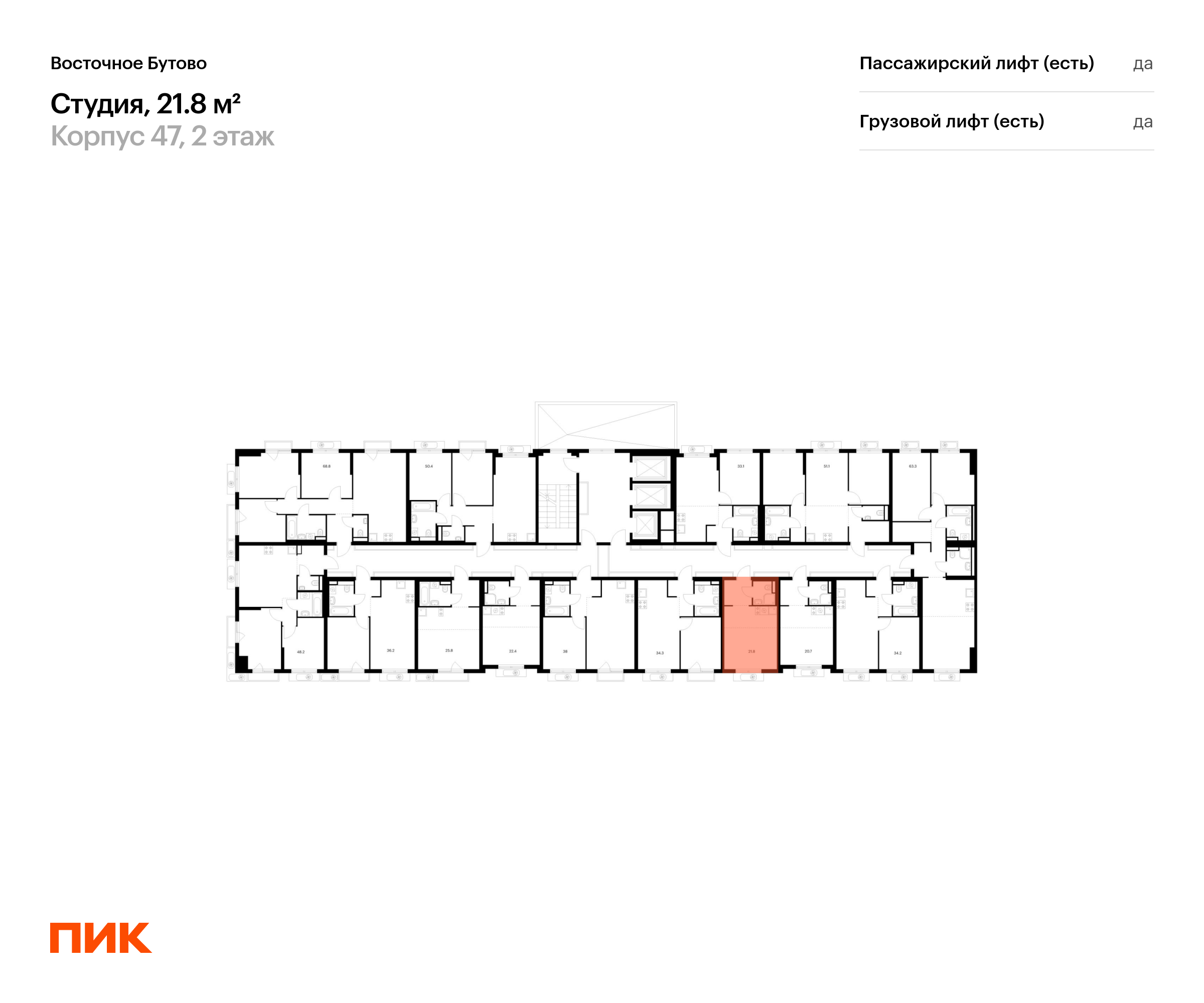 Продаётся квартира-студия площадью 21.80 кв.м на 2 этаже 25 этажного дома (Корпус 47, секция 3) проекта ПИК Восточное Бутово. Светлый просторный подъезд на уровне земли, функциональная планировка, большие окна, с отделкой.
