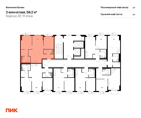Продаётся 2-комн.квартира площадью 58.20 кв.м на 11 этаже 15 этажного дома (Корпус 47, секция 2) проекта ПИК Восточное Бутово. Светлый просторный подъезд на уровне земли, функциональная планировка, большие окна, с отделкой.