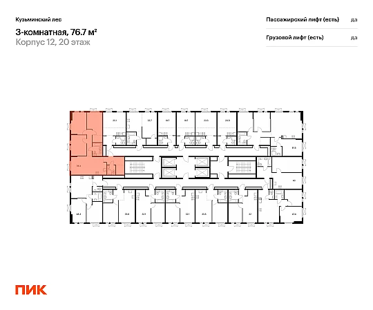 Продаётся 3-комн.квартира площадью 76.70 кв.м на 20 этаже 25 этажного дома (Корпус 12, секция 1) проекта ПИК Кузьминский лес. Светлый просторный подъезд на уровне земли, функциональная планировка, большие окна, с отделкой.