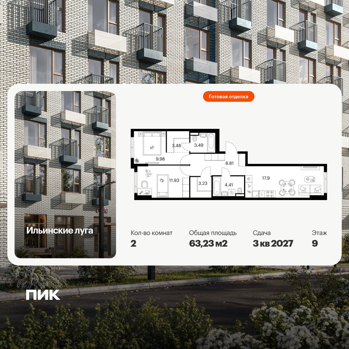 Купить 3к квартиру 81 м² в ЖК Ильинские луга