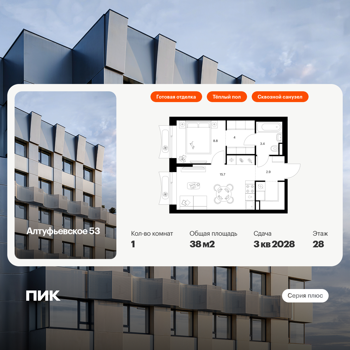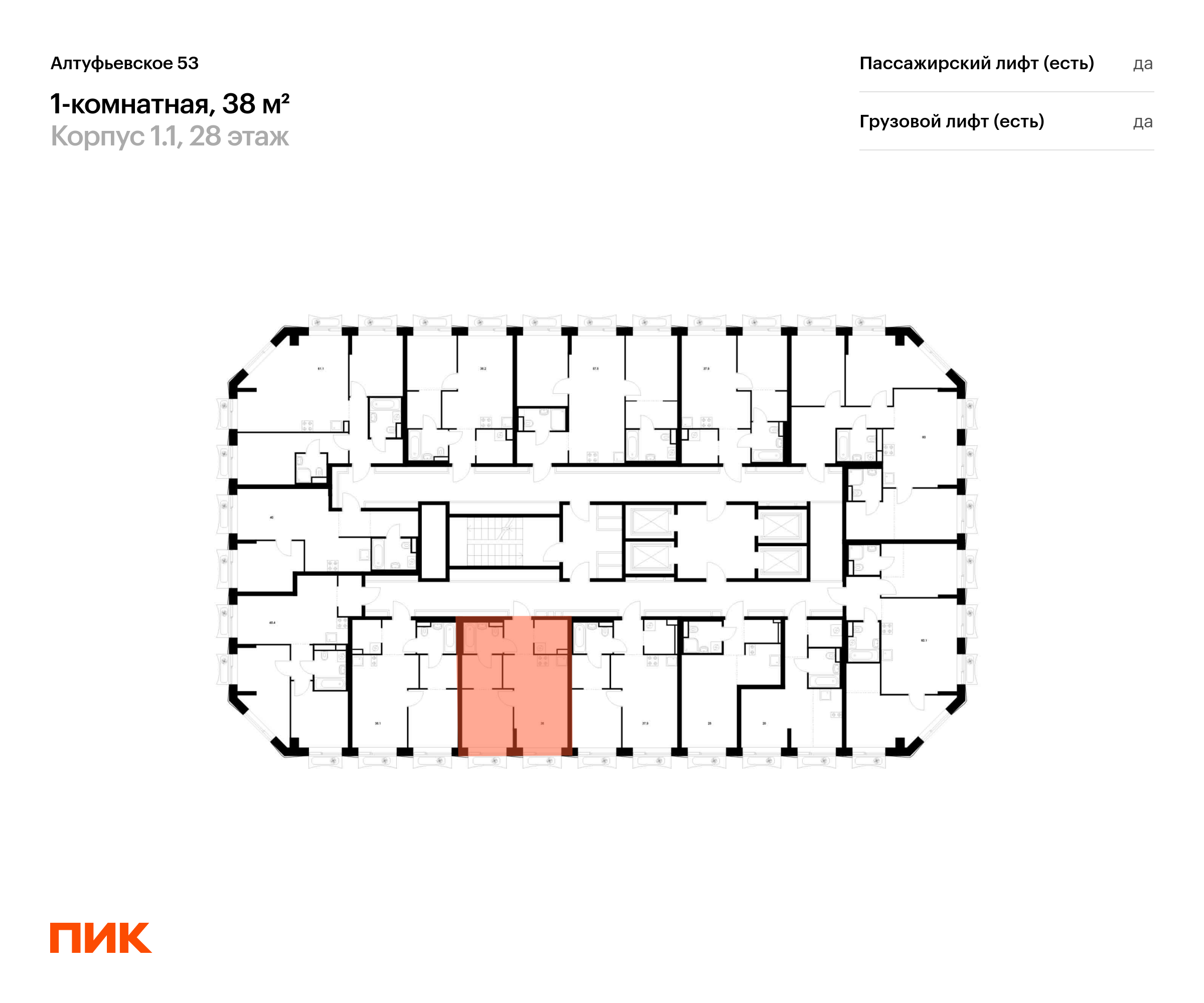 Продаётся 1-комн.квартира площадью 38.00 кв.м на 28 этаже 32 этажного дома (Корпус 1.1, секция 2) проекта ПИК Алтуфьевское 53. Светлый просторный подъезд на уровне земли, функциональная планировка, большие окна, с отделкой.