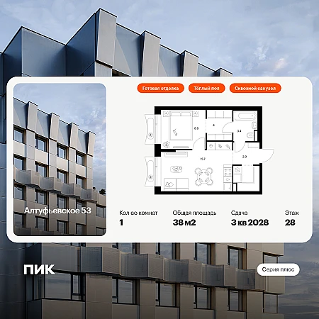 Купить 1к квартиру 38 м² в ЖК Алтуфьевское 53