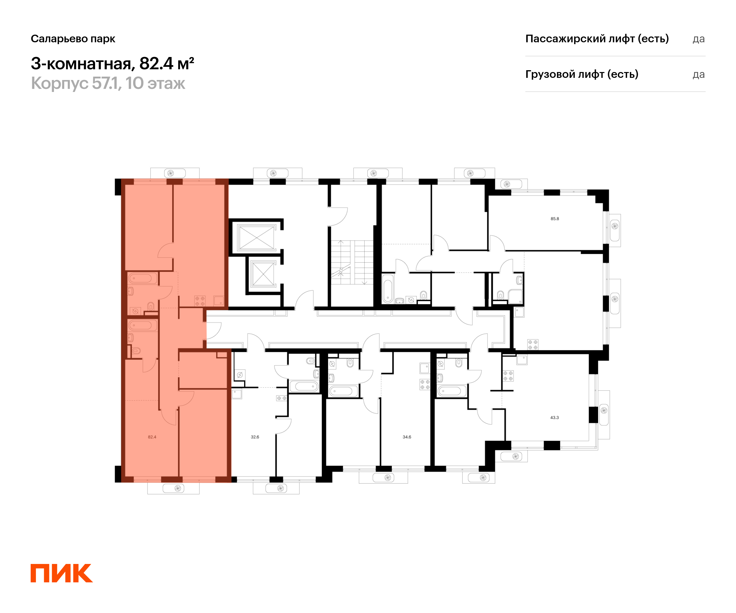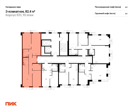 Продаётся 3-комн.квартира площадью 82.40 кв.м на 10 этаже 16 этажного дома (Корпус 57.1, секция 1) проекта ПИК Саларьево парк. Светлый просторный подъезд на уровне земли, функциональная планировка, большие окна, с отделкой.