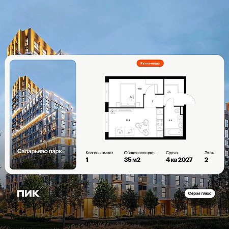 Купить 1к квартиру 35 м² в ЖК Саларьево парк