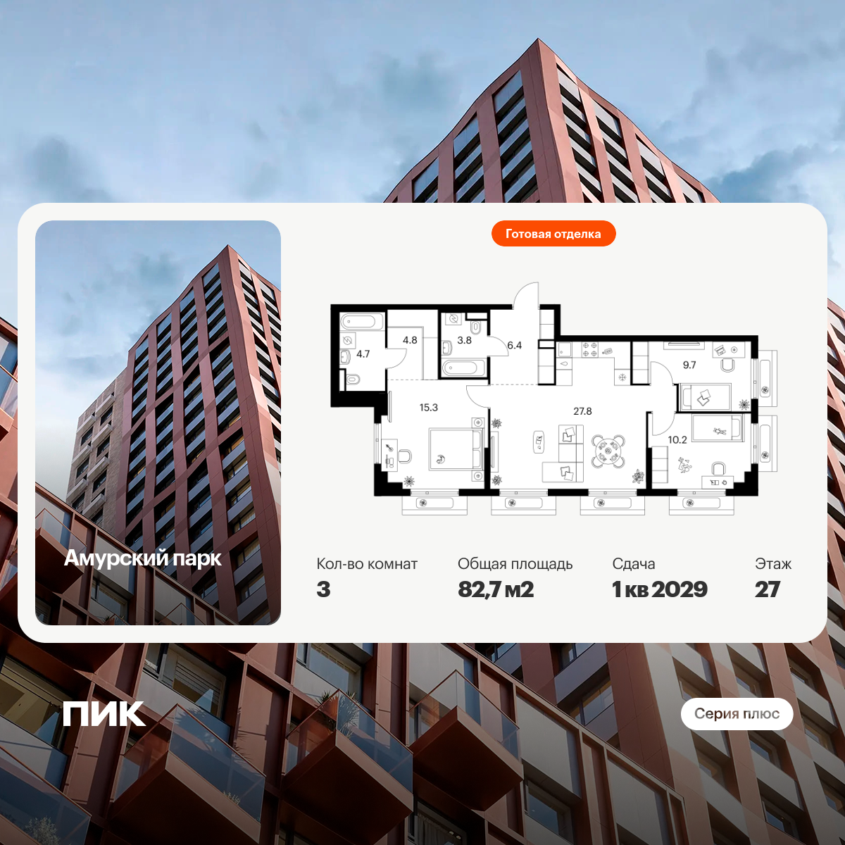 В проекте широкий выбор планировок: от компактных продуманных студий до просторных трёхкомнатных квартир для большой семьи. На выбор доступны форматы с кухней-гостиной, гардеробной и двумя санузлами. Артикул - 832483
