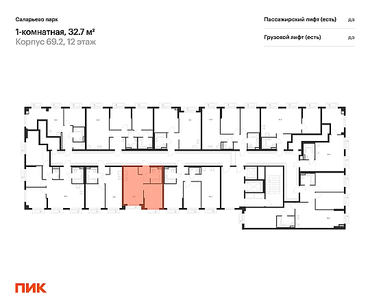 Продаётся 1-комн.квартира площадью 32.70 кв.м на 12 этаже 14 этажного дома (Корпус 69.2, секция 2) проекта ПИК Саларьево парк. Светлый просторный подъезд на уровне земли, функциональная планировка, большие окна, с отделкой.