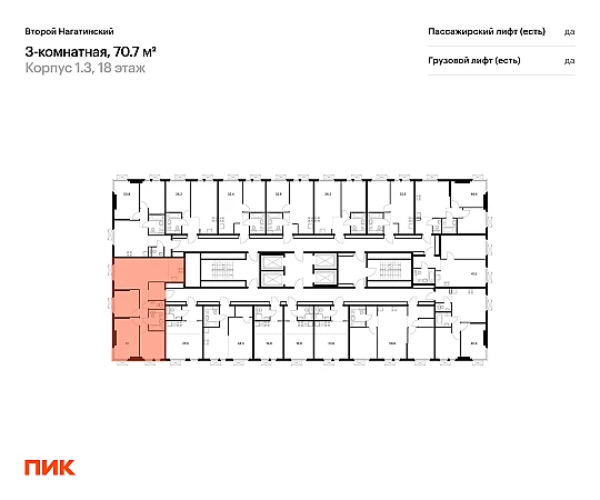 Продаётся 3-комн.квартира площадью 70.70 кв.м на 18 этаже 33 этажного дома (Корпус 1.3, секция 3) проекта ПИК Второй Нагатинский. Светлый просторный подъезд на уровне земли, функциональная планировка, большие окна, с отделкой.