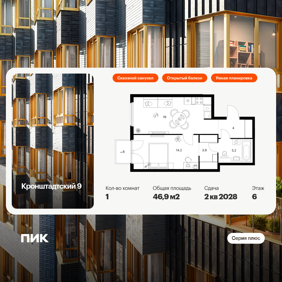 Проект принадлежит «Серии плюс». В «Серию плюс» входят жилые кварталы с повышенным уровнем комфорта и уникальной архитектурой. У квартир умные планировки: можно выбрать квартиру с мастер-спальней, где есть отдельная ванная комната, с просторной кухней-гостиной, с двумя санузлами, с гардеробной или постирочной. В светлых уютных лобби с дизайнерской отделкой предусмотрены колясочная и гостевой санузел.
