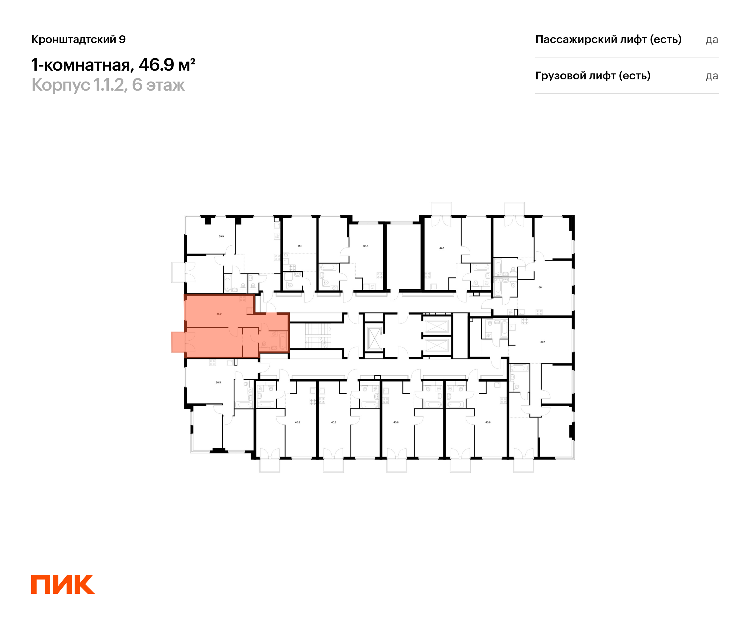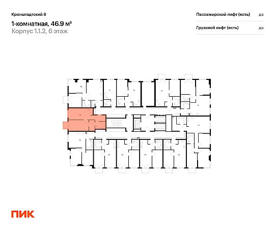 Продаётся 1-комн.квартира площадью 46.90 кв.м на 6 этаже 12 этажного дома (Корпус 1.1.2, секция 2) проекта ПИК Кронштадтский 9. Светлый просторный подъезд на уровне земли, функциональная планировка, большие окна, с отделкой.