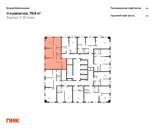 Продаётся 3-комн.квартира площадью 79.80 кв.м на 31 этаже 33 этажного дома (Корпус 7, секция 3) проекта ПИК Второй Нагатинский. Светлый просторный подъезд на уровне земли, функциональная планировка, большие окна, с отделкой.