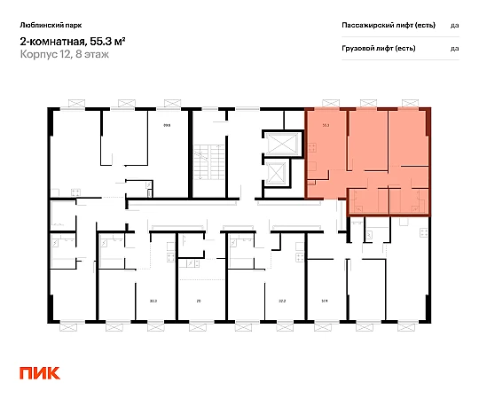 Продаётся 2-комн.квартира площадью 55.30 кв.м на 8 этаже 16 этажного дома (Корпус 12, секция 6) проекта ПИК Люблинский парк. Светлый просторный подъезд на уровне земли, функциональная планировка, большие окна, с отделкой.