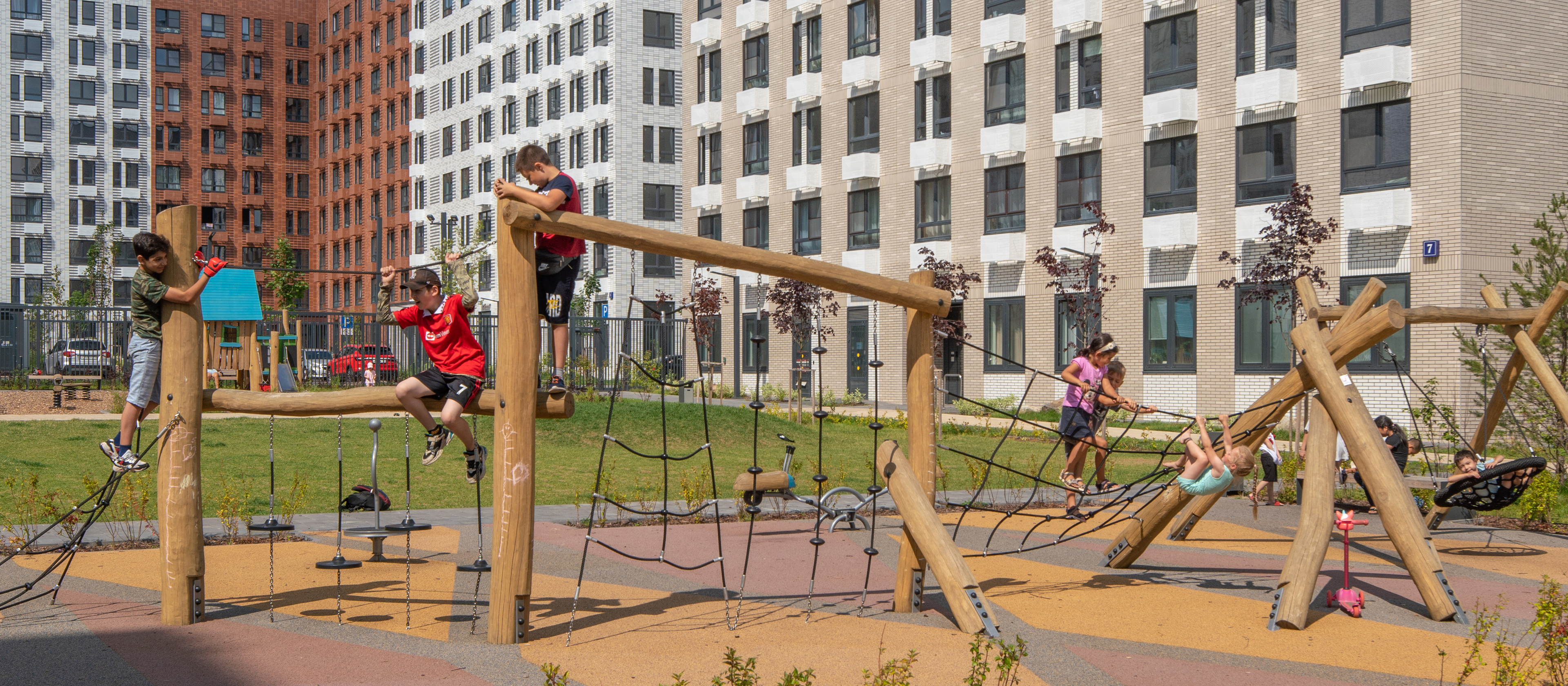 Через квартал протянется широкий пешеходный бульвар для прогулок и отдыха. Уже открыт ПлейХаб «Гравити» — большая игровая площадка для детей разного возраста с лазательным комплексом, песочной станцией и зонами отдыха для родителей. На первых этажах домов работают магазины, кафе и полезные сервисы. А на парковке установлены зарядные станции для электрокаров.
