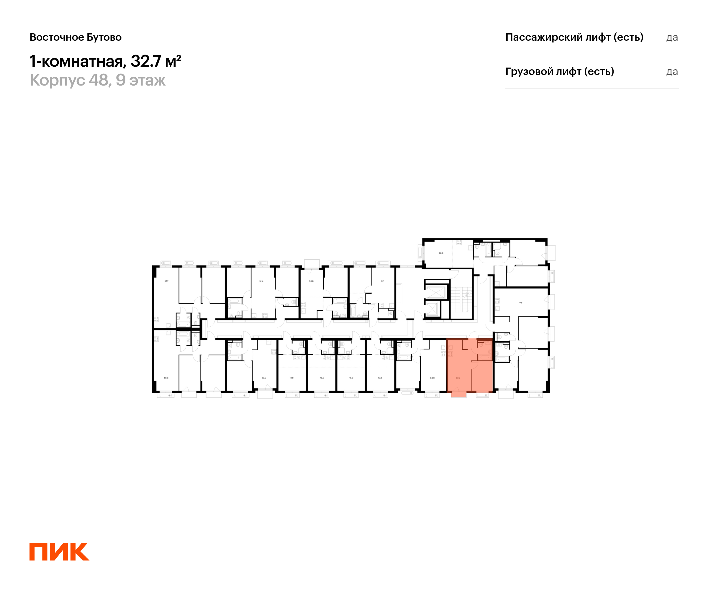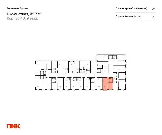 Продаётся 1-комн.квартира площадью 32.70 кв.м на 9 этаже 17 этажного дома (Корпус 48, секция 2) проекта ПИК Восточное Бутово. Светлый просторный подъезд на уровне земли, функциональная планировка, большие окна, с отделкой.