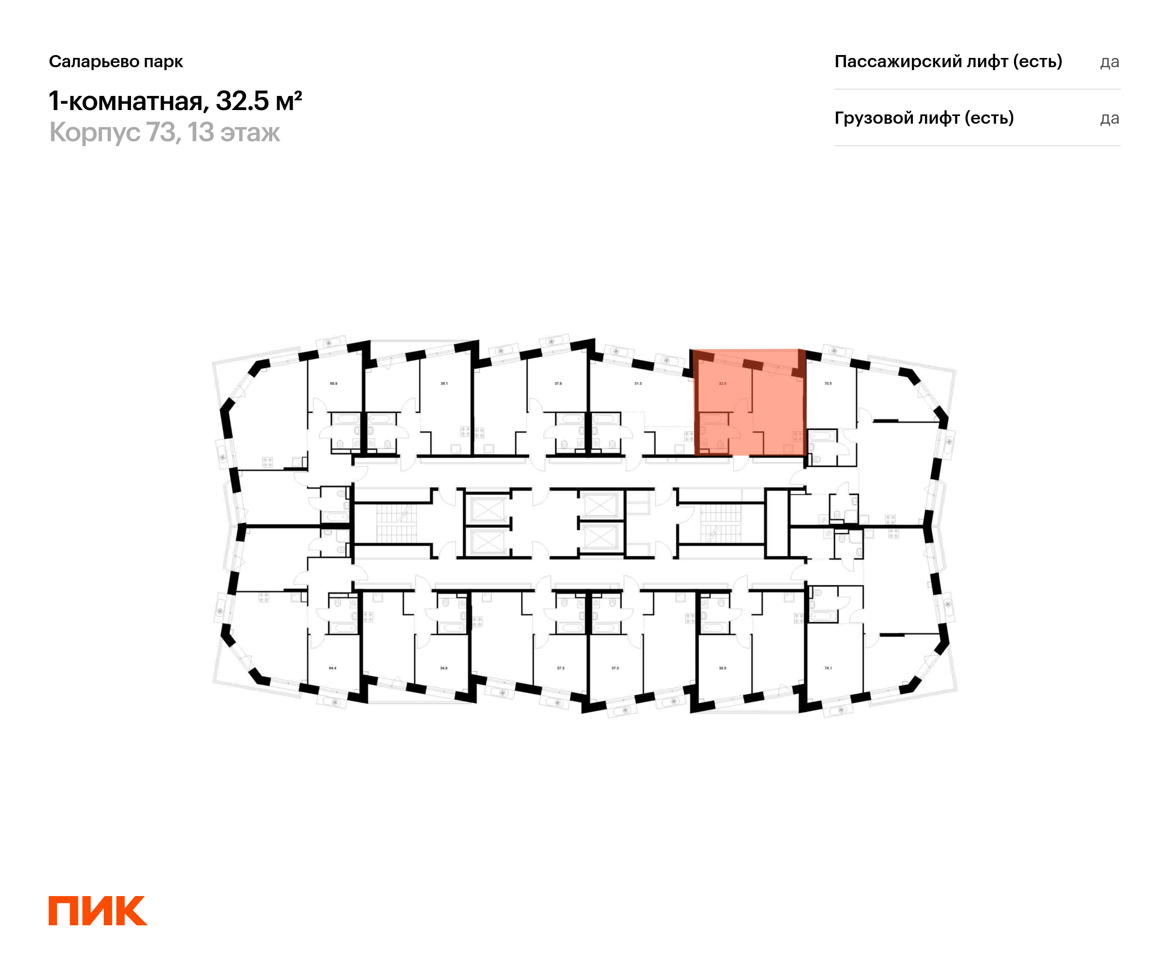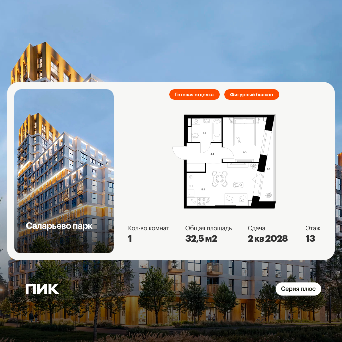 Продаётся 1-комн.квартира площадью 32.50 кв.м на 13 этаже 22 этажного дома (Корпус 73, секция 1) проекта ПИК Саларьево парк. Светлый просторный подъезд на уровне земли, функциональная планировка, большие окна, с отделкой.