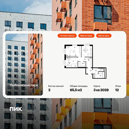 Продаётся 2-комн.квартира площадью 65.50 кв.м на 12 этаже 25 этажного дома (Корпус 18-20, секция 1) проекта ПИК Люблинский парк. Светлый просторный подъезд на уровне земли, функциональная планировка, большие окна, с отделкой.