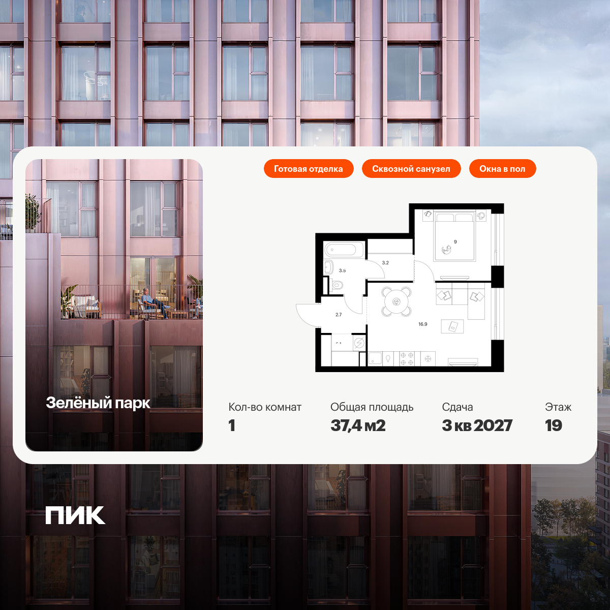 Продаётся 1-комн.квартира площадью 37.40 кв.м на 19 этаже 28 этажного дома (Корпус 6.6, секция 5) проекта ПИК Зелёный парк. Светлый просторный подъезд на уровне земли, функциональная планировка, большие окна, с отделкой.