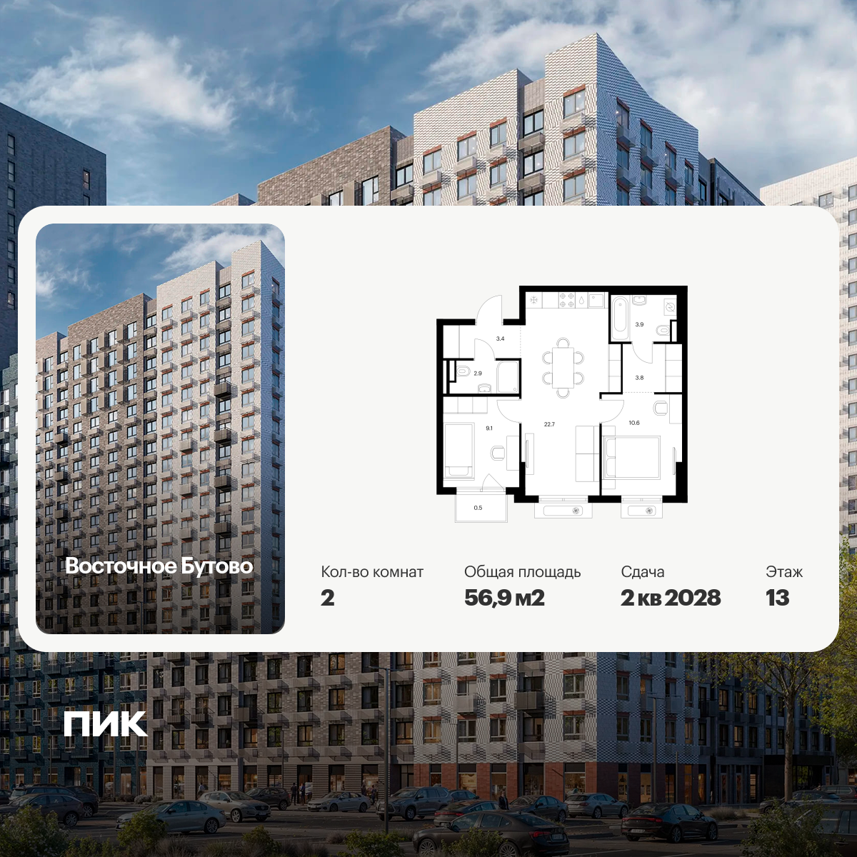 Продаётся 2-комн.квартира площадью 54.20 кв.м на 3 этаже 25 этажного дома (Корпус 16.2, секция 5) проекта ПИК Белая Дача парк. Светлый просторный подъезд на уровне земли, функциональная планировка, большие окна, с отделкой.