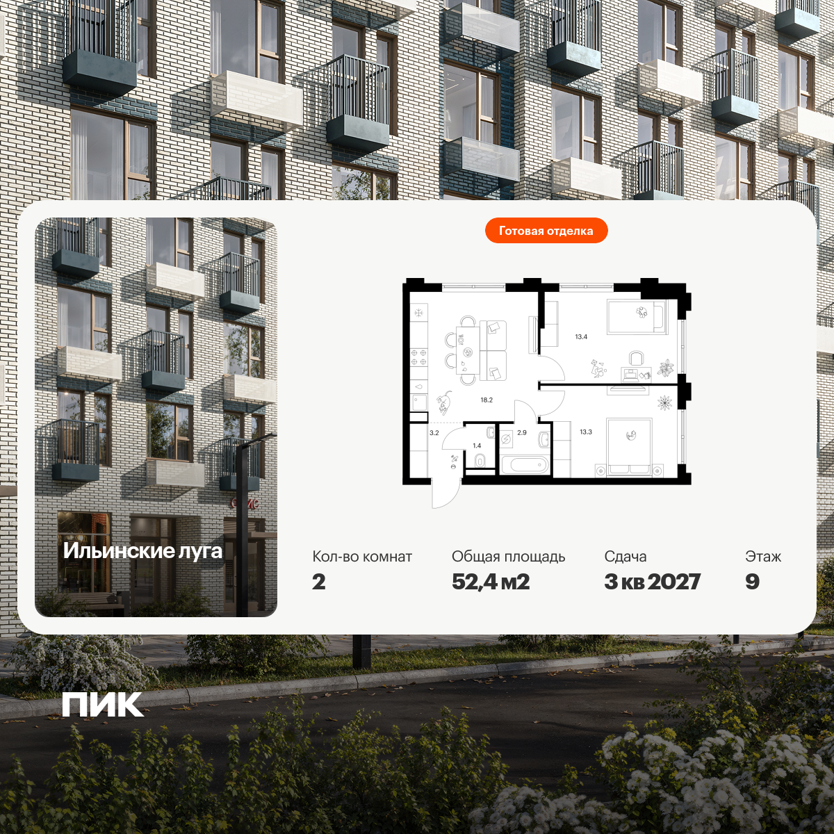 Купить 2к квартиру 54 м² в ЖК Белая Дача парк