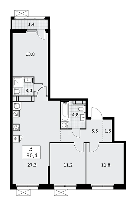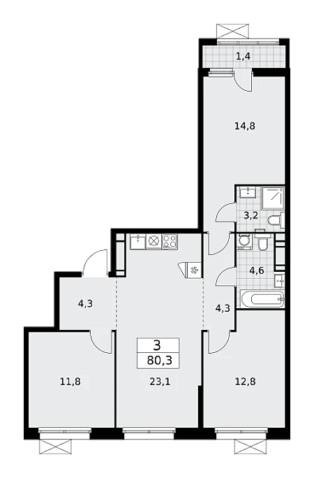 Купить 3к квартиру 91 м² в квартале Амурский парк